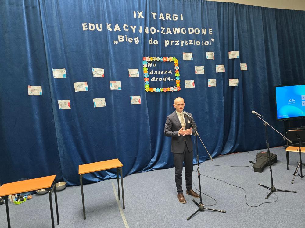 IX Targi Edukacyjno–Zawodowe w Zespole Szkół im. Leokadii Bergerowej w Płocku, które odbyły się 9 kwietnia 2025 roku pod honorowym patronatem Starosty Płockiego Sylwestra Ziemkiewicza, otworzył Dyrektor szkoły Jacek Kłosiński, który przywitał zaproszonych gości w osobach: Starosty Płockiego Pana Sylwestra Ziemkiewicza, Wicestarosty Waldemara Zawadzkiego, a także wszystkich przybyłych wystawców.